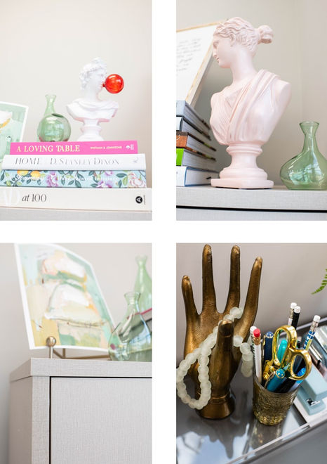 Story: This is where the magic happens! Flooded with natural light, this is where we work, meet, and scheme. Here lives our sample library of fabrics, wallpapers, leathers, metals, woods, tiles, carpets, catalogs, and more from the hundreds of vendors we use to source for projects. Our studio is small but mighty, and is our happy place!